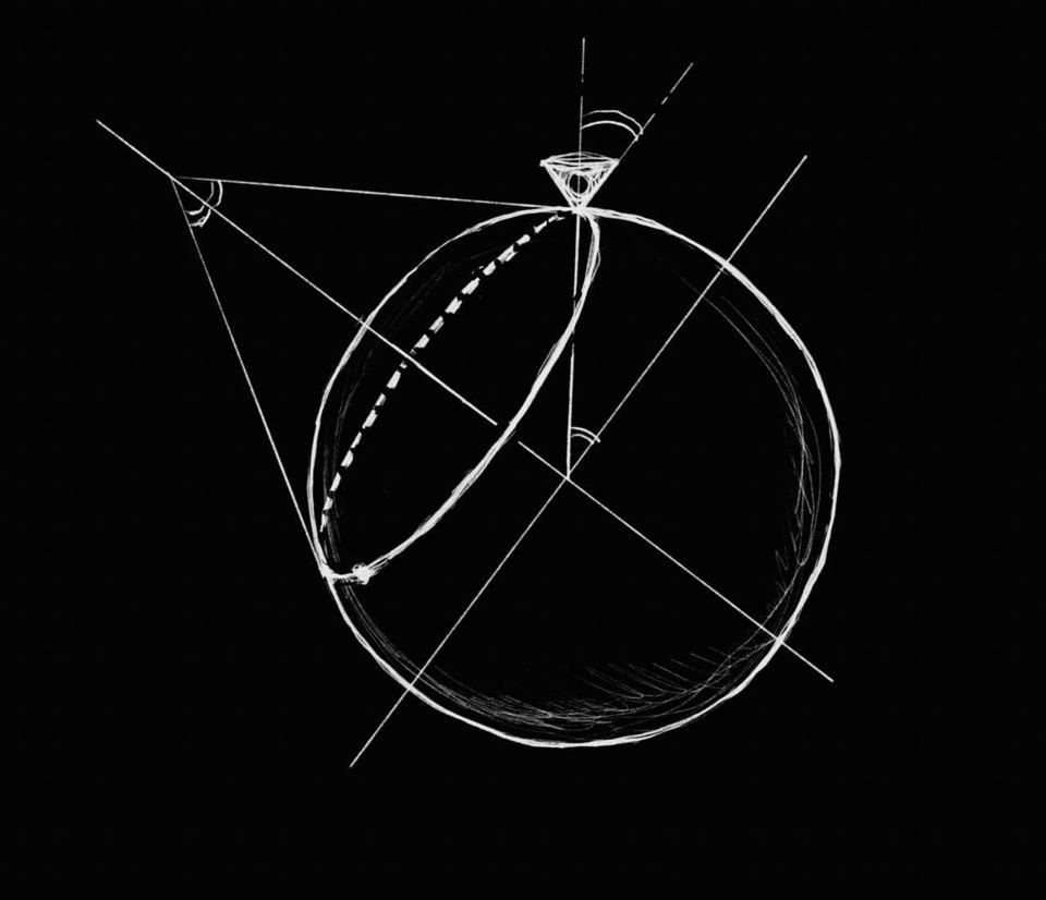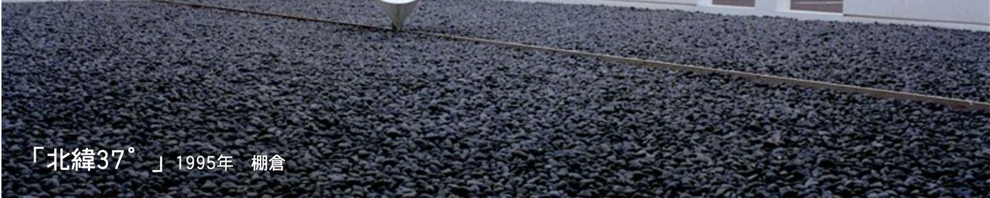 棚倉町文化センター中庭の環境彫刻: 北緯37度をスローガンとしている棚倉町の文化センター、その中庭の環境彫刻。 西壁の開口から中庭の中央を東西に走るステンレスの緯度線を埋込み、その線上の一点が即ちこの場所であることを指し示したもの。 真ん中の彫刻は、球面をその北緯37°線上の接線で一周してできる円錐からずらして刳り貫いた形をしており、頂角が37°になっている。 中庭の中央を東西に走る軸線その直線上の一点、「この場所」球面の37°線上の接線の集合体である円錐 東西に走る軸線 直線上の一点、「この場所」 球面の37°の接線の円錐 球面の37°の接線の円錐