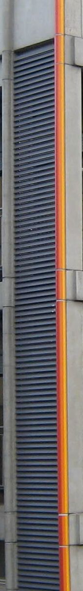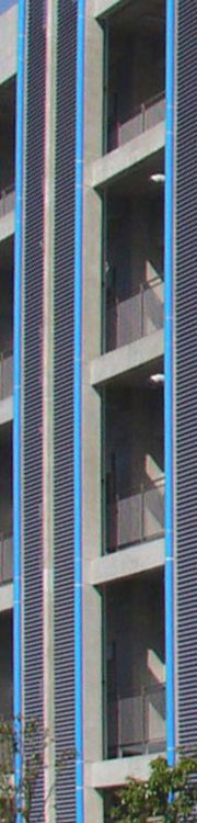 横浜市リーディングベンチャープラザにおける、ファサードマリオンと照明灯の色彩による景観造形。
