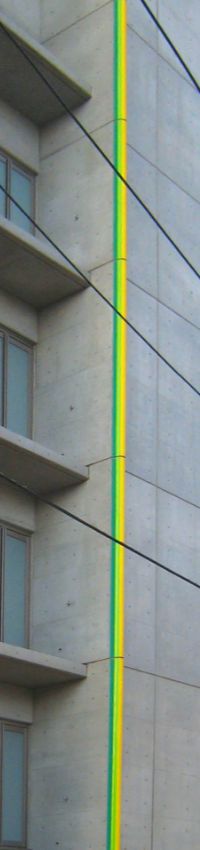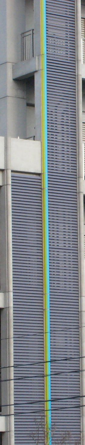 空間を動き回り、見る角度が変わることによって、円柱の色配列・その組み合わせが変化していく。